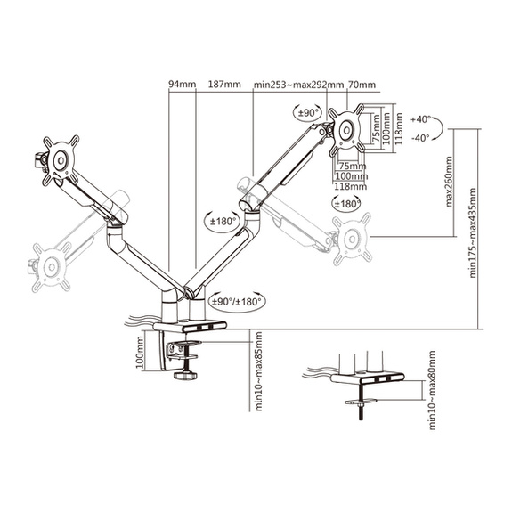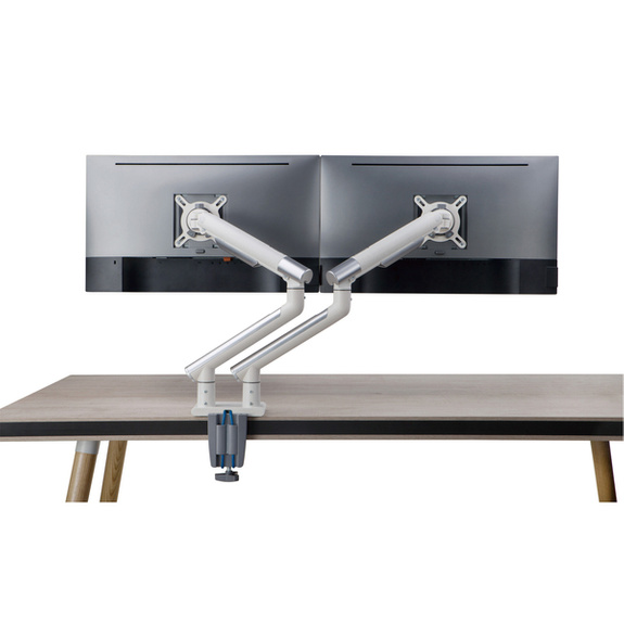 Uchwyt L-20GD marki ART do dwóch monitorów, na sprężynie gazowej to niezwykle wszechstronne rozwiązanie dla każdego, kto pragnie poprawić komfort miejsca przeznaczonego do pracy, nauki i rozrywki przed monitorem komputera. Dzięki prawidłowemu ustawieniu sprzętu komputerowego dbamy o właściwą postawę ciała, unikamy bólu kręgosłupa, ale także chronimy nasz wzrok. L-20GD ART pozwala stabilnie dostosować położenie ekranu i rotację względem naszych potrzeb, preferencji oraz głównych zasad ergonomii, kładących nacisk na zdrowe i komfortowe warunki pracy.
